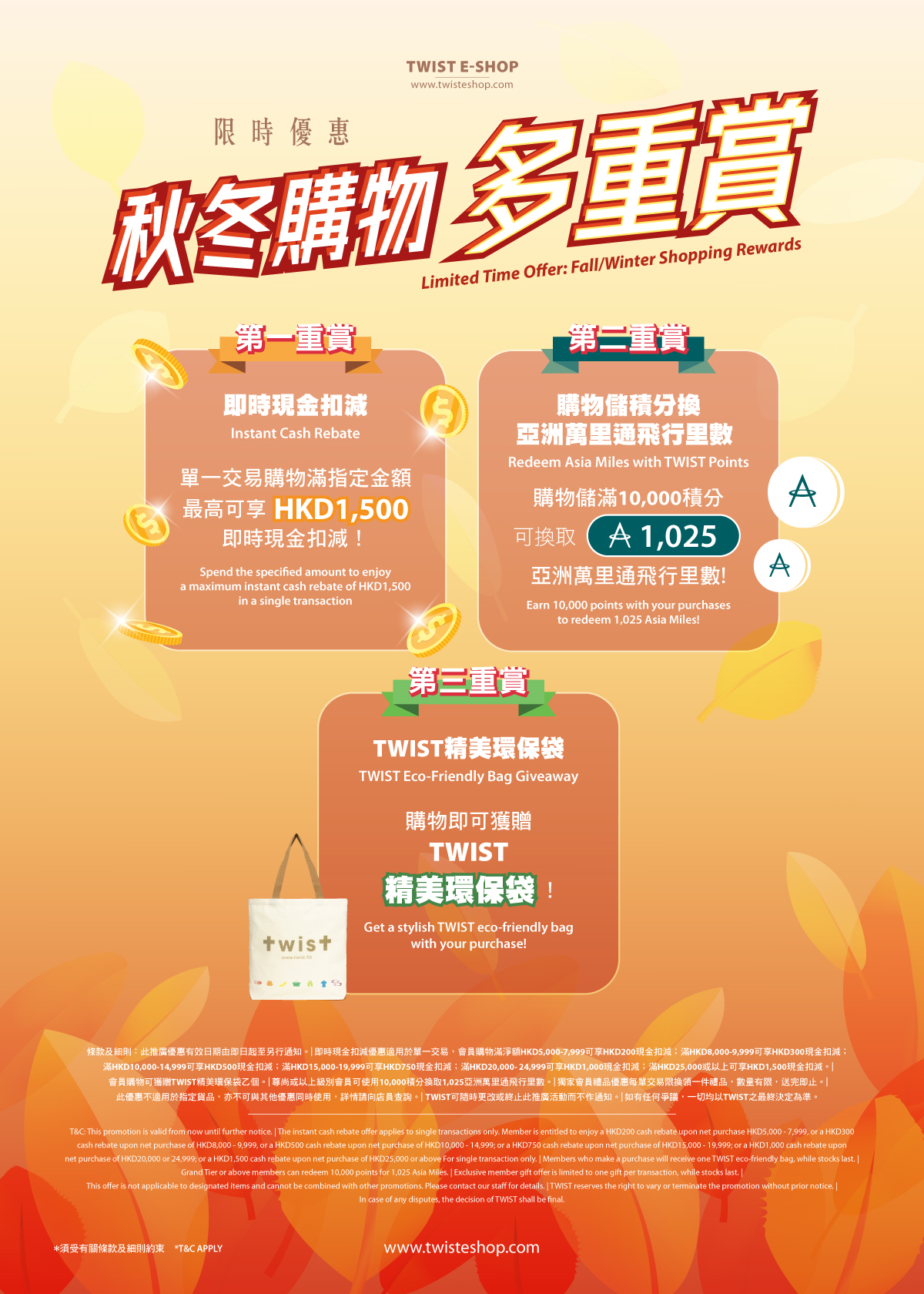 輸入店員優惠碼 全單滿HK$3,000 即享HK$100扣減