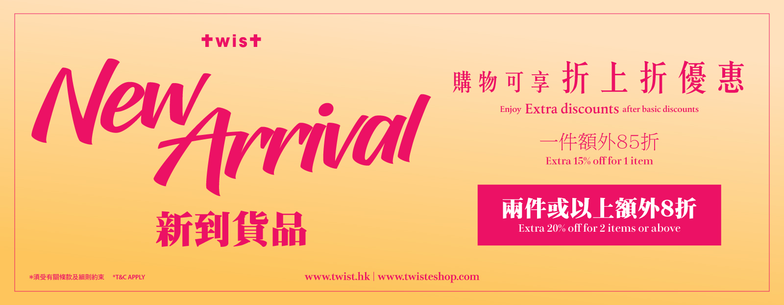 歡迎來到TWIST eShop! TWIST eShop,香港高級潮流品牌時裝網購平臺,每季從世界各地搜羅不同品牌時裝商品,帶給顧客無盡驚喜,滿足時裝愛好者對優質品牌時裝商品的熱切需求,深得不同年齡及階層來自不同地區的顧客愛戴!發展至今,已引入過百個來自歐洲及世界各地品牌的商品。立即到 TWIST eShop選購最新的時裝單品吧!