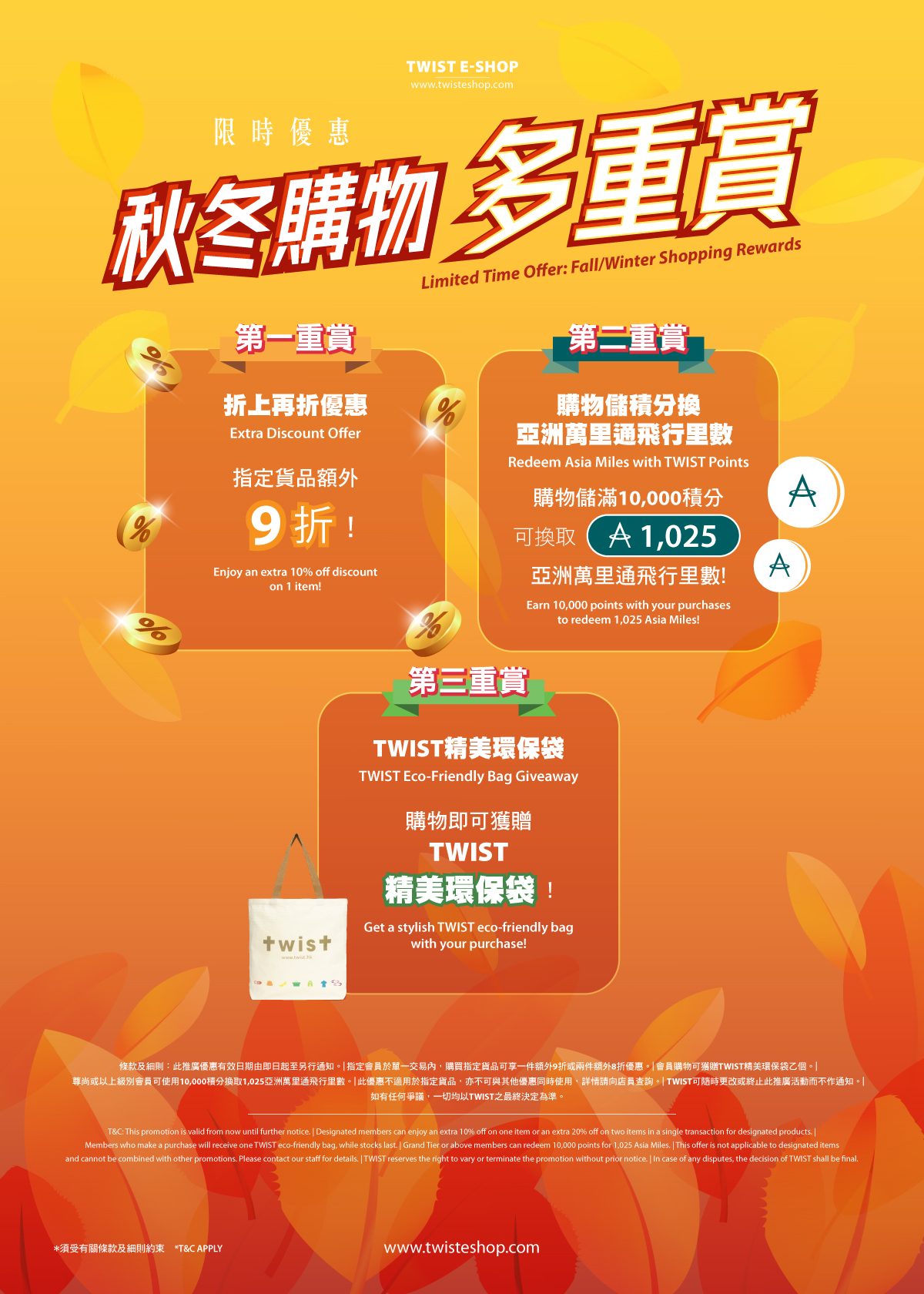 輸入店員優惠碼 全單滿HK$3,000 即享HK$100扣減